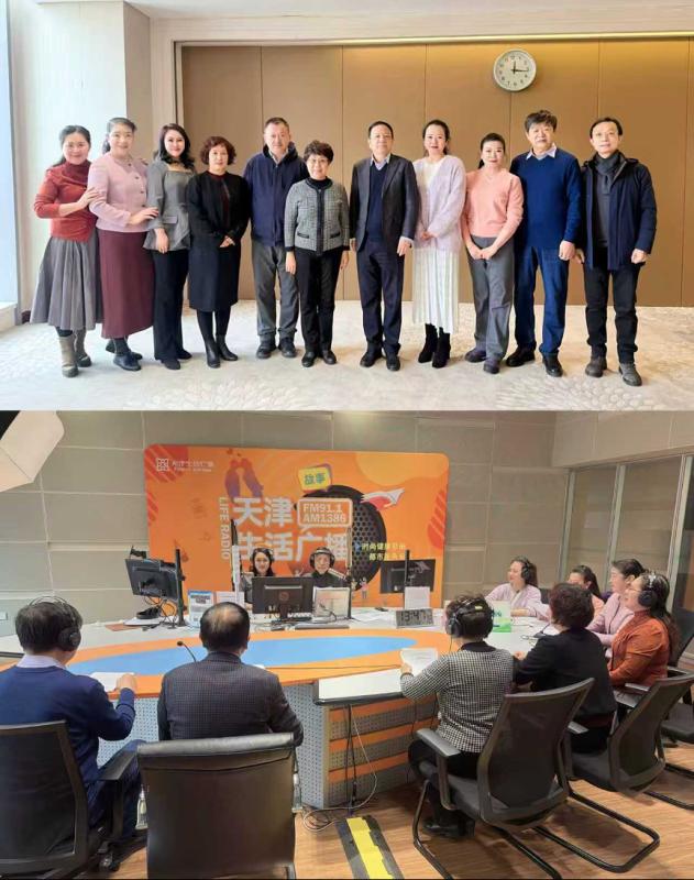 12月16日,应天津海河传媒中心生活广播邀请,天津市老年人大学党委书记、校长李荣,副校长贺兰芳、刘桂祥,舞蹈戏曲系特殊贡献教师张惠玲、书法系自学成才代表顾孟泽、音乐系青年教师代表王磊及银发学子代表——2025年全国新时代“百姓之星”荣誉获得者杨志萍,共同走进《枫叶正红》节目直播间,围绕“银龄芳华四十载 教育筑梦新时代”主题,畅谈学校发展历程中的师生情怀与教育初心。