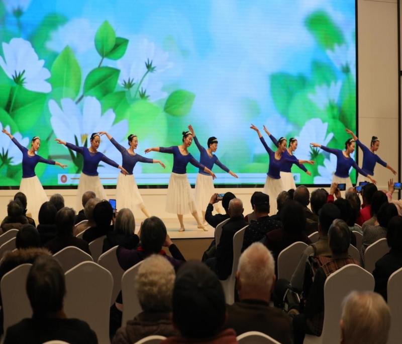 明亮的大厅,宽敞的演播会场座无虚席,充满了欢声笑语。舞蹈戏曲系学员表演了芭蕾舞《这世界有那么多人》,一群优雅的小天鹅在浪漫的乐曲中,舒展着优雅的舞姿,在清澈的湖水中,在明媚的阳光里,尽情地展示着芭蕾的魅力;音乐系学员王慧表演的女声独唱《红梅赞》,刚劲中透着柔美,表现了革命者坚定的意志,宁死不屈的精神和对胜利的信心,唤醒百花齐开放,红梅报春春常在;生活艺术系服饰表演班的女模们表演的《绿水青山》,行云流水般飘逸,婀娜多姿的身韵,仿若仙女下凡,翩翩起舞在绿水青山之间;舞蹈戏曲系学员表演的单弦岔曲《松月绕》,松生幽谷月横空,月吐明珠松化龙。松涛月下浮云静,月照松梢更有情;男模团体秀《舞朝风韵》,一群平均年龄在68岁的帅哥们,随着雄浑的号角,迈着铿锵的脚步,犹如龙飞虎跃,万马奔腾,亮相、转身、挥扇,潇洒刚劲,气势如虹。学员们表演潇洒自如,吐字清晰,韵味浓郁,情感细腻,把人融入了情景交融的意境,每一个精彩演出都赢得了在场老年朋友的热烈掌声。