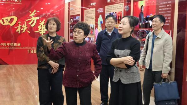 考察组先后实地走访校园全域环境、校史陈列馆、师生书画作品展等重点区域,边走边看、边听边询,详细了解我校四十余年办学积淀、整体功能布局、智慧校园教学配套设施以及特色校园文化建设成果,近距离感受我校深耕老年教育领域形成的办学亮点与丰硕育人成效。